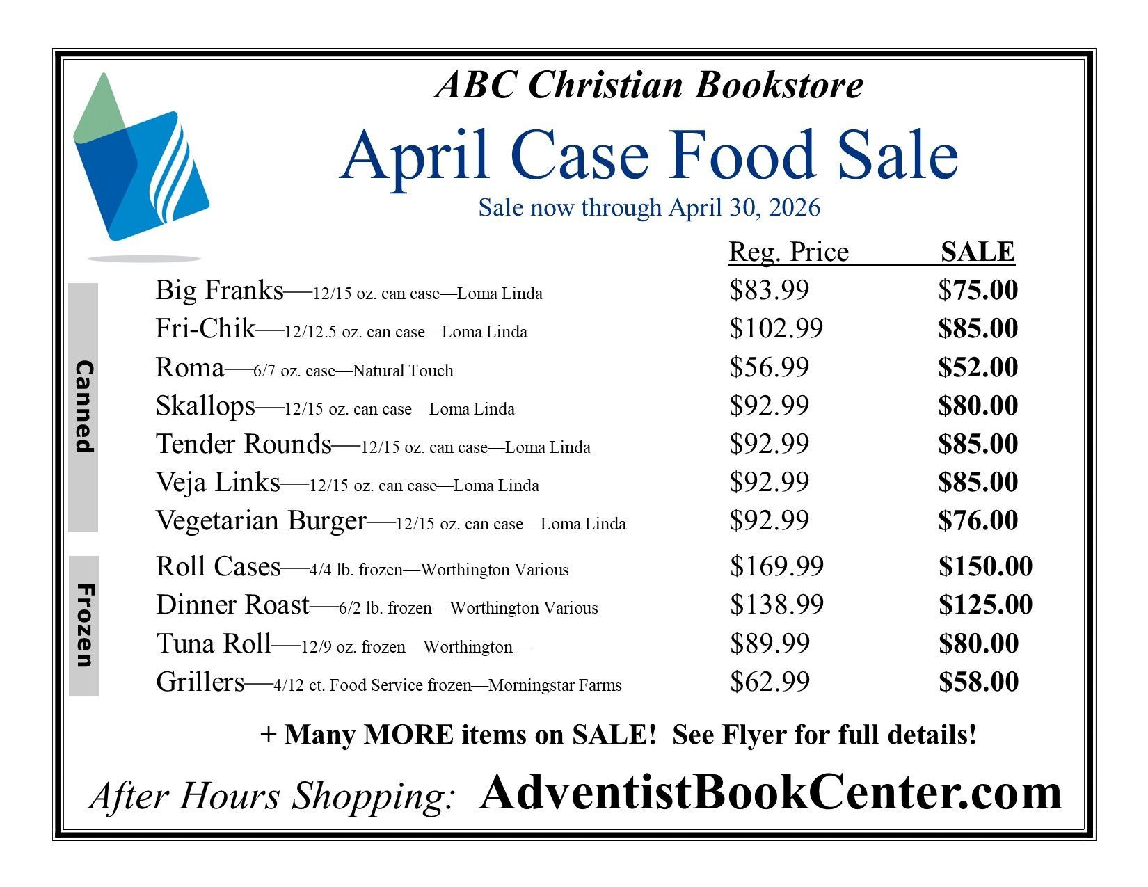 The ABC Bookstore offers a wide selection of Bibles and other Christian books in addition to vegetarian, vegan and gluten free food options. Contact us for more information and to get on our mailing list.