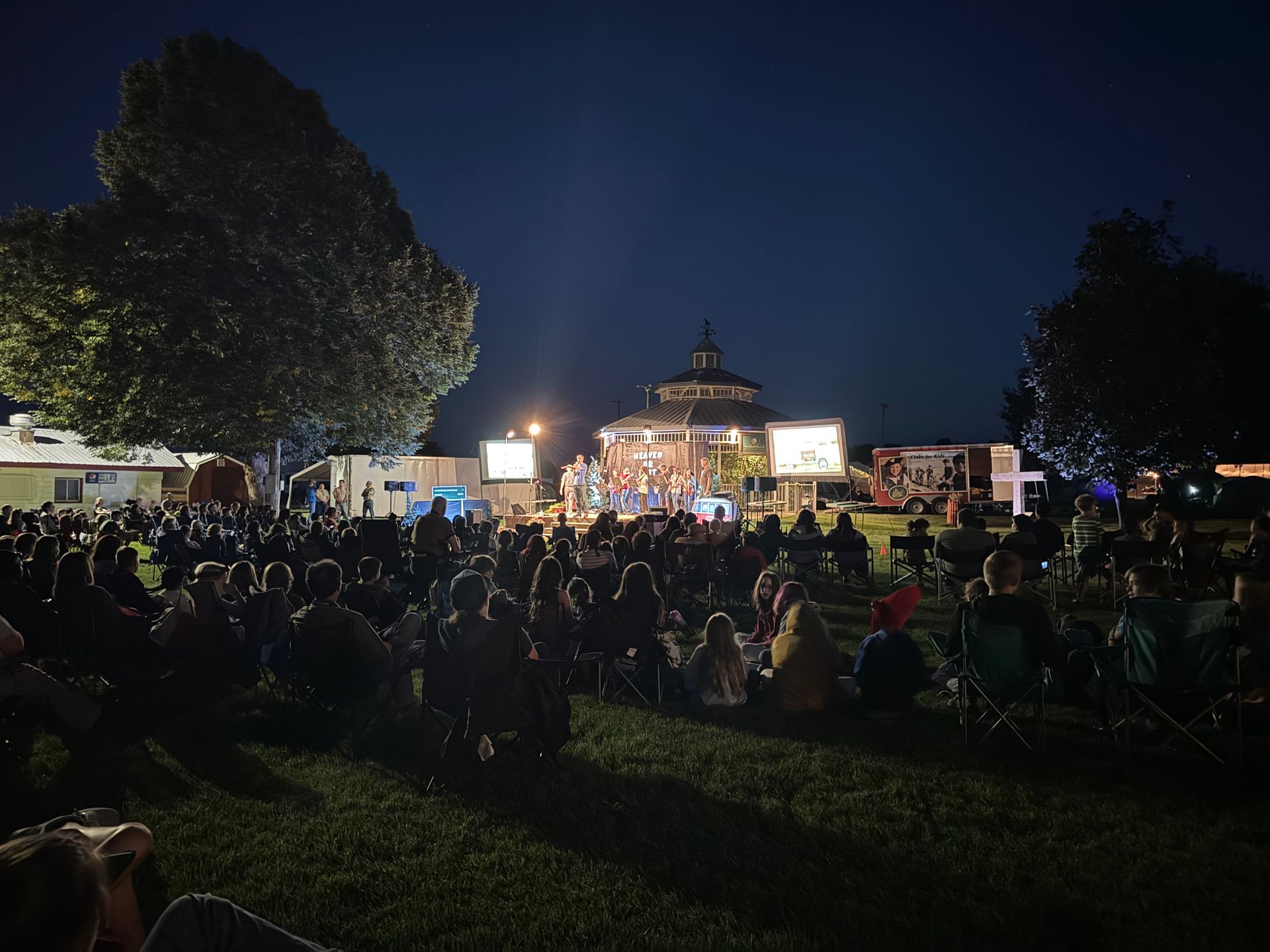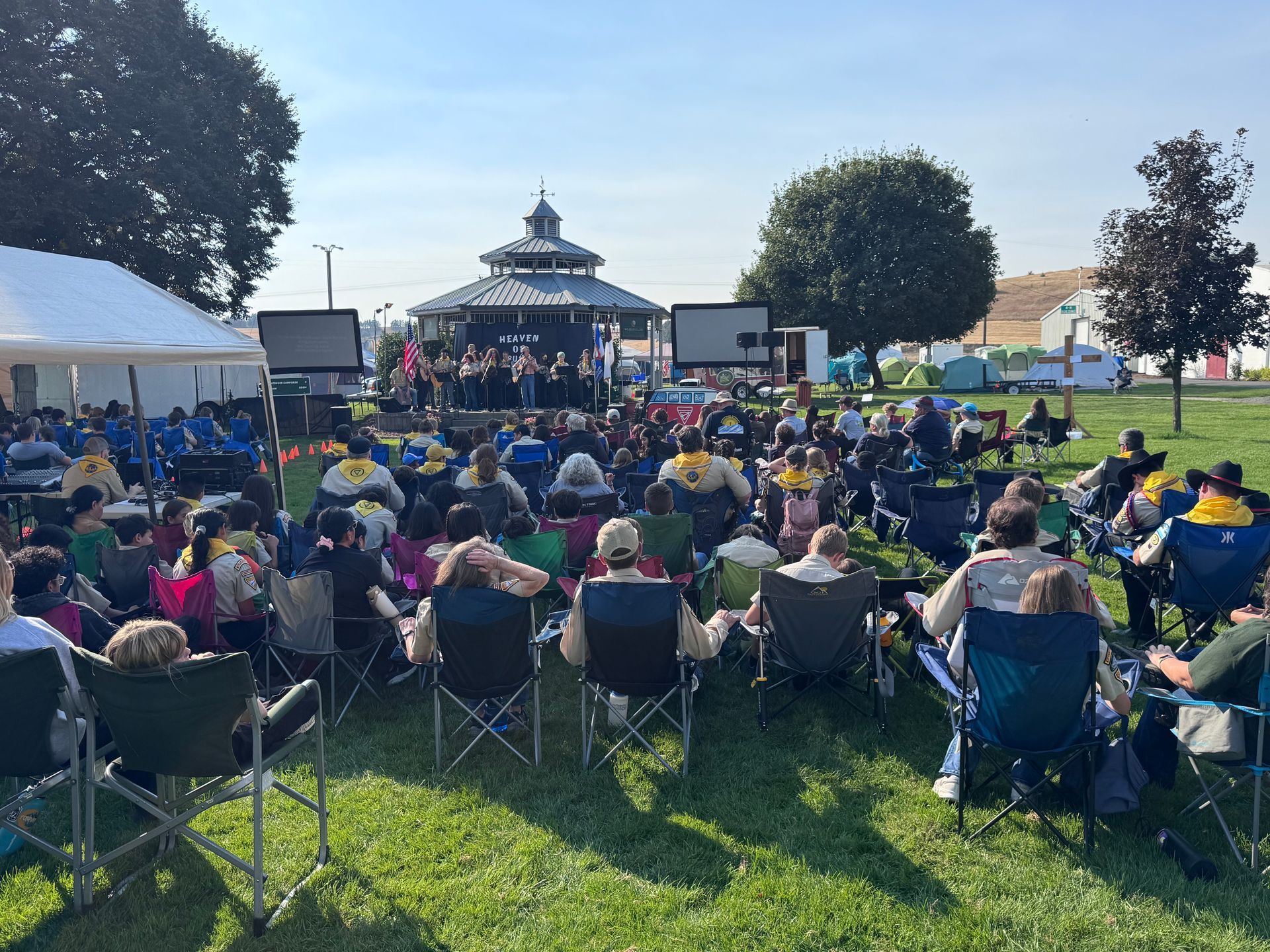 The fairgrounds included open fields for clubs to camp at, buildings for teaching honors on Sabbath afternoon, and a central gazebo large enough to hold meetings at. It also had additional fields for drill and marching, as well as a big building for playing games on Sabbath evening.